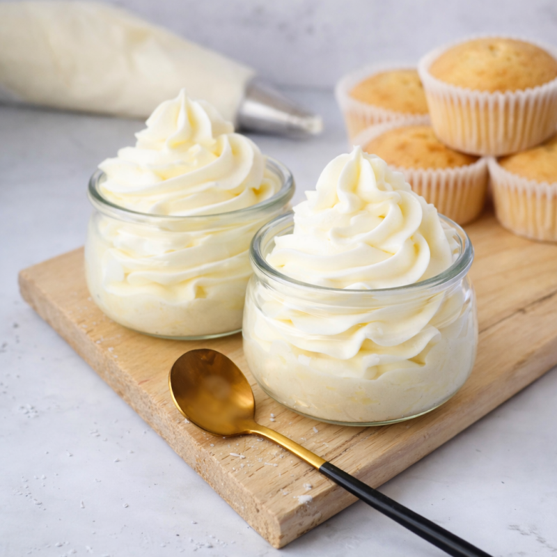 Een luchtige botercrème die perfect is om cupcakes en taarten mee af te werken. Dit basisrecept laat zich makkelijk kleuren en op smaak brengen, zodat je eindeloos kan variëren naargelang het moment of thema.
