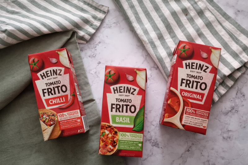 De Tomato Frito sauzen van Heinz zijn ideaal als smaakvolle basis voor drukke dagen. Ze zitten boordevol tomatensmaak en zijn er in verschillende varianten zoals Original, Basil en Chili. Zo kan je makkelijk variëren: van een zachte pastasaus tot een pittige ovenschotel zoals deze. Handig, snel en toch vol smaak.