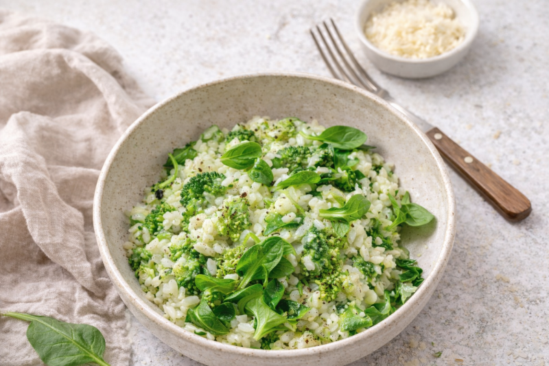 Een romige risotto met een frisse twist. De pesto zorgt voor een volle, kruidige smaak, terwijl de veldsla het geheel lekker licht maakt. Een eenvoudig maar smaakvol gerecht, perfect voor elke dag.
