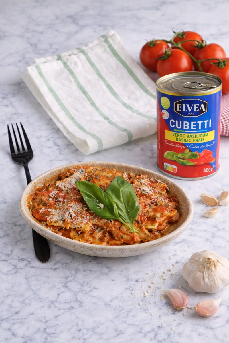 Dit gerecht is pure comfort in een bord. Zachte ravioli in een romige tomatensaus, gecombineerd met verse spinazie, zorgt voor een heerlijke balans tussen vol en fris.