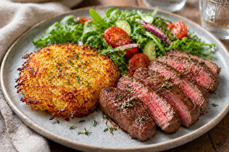 Een iets chiquer gerechtje voor midden in de week. De sappige lamssteak combineert perfect met krokante rösti.